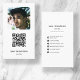 Um cartão de visita minimalista moderno personalizado para quem quiser colocar uma fotografia na frente da cartão de visita. Uma maneira simples e profissional de apresentar sua presença empresarial, empresarial ou corporativa. Personalize a parte frontal do cartão de visita com sua foto e adicione código QR e detalhes no verso. Crie seu cartão de visita único e elegante. Ícones das mídias sociais incluídos na design deste cartão de visita para você usar.
