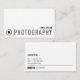 Um cartão de visita moderno para fotógrafos usando letras ousadas com diferentes tons de cinza e preto. O design inclui um logotipo do obturador da câmera que pode ser substituído pelo seu, se desejado. Além dos seus contatos regulares, você tem a opção de adicionar seu identificador de mídia social para aumentar a chance de interação com clientes potenciais ou parceiros comerciais. Embora este design de cartão de visita profissional esteja configurado para fotógrafos, ele pode ser usado para uma grande variedade de empresas usando as opções de personalização e personalização oferecidas.