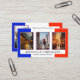 Cartão de visita com suas fotos personalizadas com a bandeira francesa como fundo na frente. No verso está o espaço para outra foto e também um modelo de código QR. Bonita para um professor de língua francesa ou personalizável, por exemplo, uma agência de viagem que oferece viagens à França.