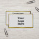 Esta cartão de visita minimalista é dupla face. Ambos os lados têm uma elegante borda falsa de ouro. Lado um: uma imagem de exibição pode ser substituída pelo logotipo da sua empresa.Lado dois: há texto a ser substituído pelo nome da empresa e seu endereço, número de telefone, endereço de e-mail e site. Todo o texto pode ser editado ou excluído. O texto é preto.
