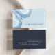 Os cartões de visitas de aquarela elegantes apresentam ilustrações de geode ou fatia agata em tons de onda azul-claro num fundo branco. Cartões inversa a azul marinho escuro sólido com letras brancas, com campos para as informações de contato do cheio.