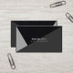 Um cartão de contato elegante e moderno e geométrico preto e cinza, com campos para nome, profissão, número de contato e e-mail... para ocasiões estritamente comerciais em que você precisa de um toque contemporâneo