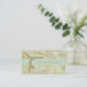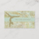 Este é um cartão de visita para um instrutor de ginástica ou ginástica muito bonito. Ele apresenta um fundo dourado, verde de menta e branco abstrato marmoreado, com um banner de nome verde-claro correspondente. A faixa está finamente alinhada em ouro brilhante. Seu texto personalizado também está em ouro. Uma ginasta de ouro mais escura atinge uma pose no lado esquerdo da frente. A parte traseira da placa tem o mesmo plano de fundo, com um campo para suas informações na cinza. Atacando!