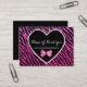 Um cartão de visita de boutique preto e cor-de-rosa brilhante com uma marca-zebra cor-de-rosa tenra e coração feminino. Personalize esses cartões de visitas de impressão de animais cor-de-rosa glamourosos com uma fita rosa-quente fofinha engraçada amarrada em um arco, adicionando o nome do seu compro de moda e site. Imagem impressa plana, NÃO com brilho ou fita real.