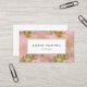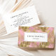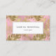 Um design de cartão de visita com um padrão de vidro de folhagem de folhas de folhas falsas de ouro em fundo rosa. Personalize-o com seu nome e título no texto da cinza de carvão em um retângulo branco. Adicione seu nome, título e detalhes de contato no verso.
