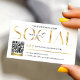 Create custom QR code business cards for your business using these glam white and gold effect social media business cards. Featuring trendy font in gold that reads 'Social', custom QR code, your contact details and business logo. Use these modern scannable URL business cards to promote your instagram, tiktok, facebook, youtube or any other social media.
