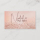 cartão de visita de cor ouro rosa, bonito, com brilho brilhante rosa de ouro falso, na parte inferior. Personalize o texto personalizado, na parte frontal e traseira do cartão, para atender às necessidades de sua empresa. Excelente para muitas ocupações, como estilistas, planejadores de partidos, maquiagem, spas e muito mais.
