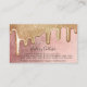 Esta cartão de visita de tecnologia de unhas giro e glamourosa é perfeita para uma na moda e profissional de negócios. Ele apresenta pingos brilhantes de ouro esmaecidos e esmalte de unhas douradas esmaecidos em cima de um fundo de folha de ouro rosa. A tipografia é uma elegante escrita cursiva com uma fonte serif moderna a corresponder. É chic, bonito, exclusivo e luxuoso; a maneira perfeita de anunciar sua empresa e estilizar seu marketing e material de propaganda para seus clientes.