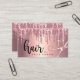 Este cartão de visita elegante design de cabelos estilista apresenta cobre falso e rosa rosa rosa-rosa com textura metálica brilhante, tesoura e elegante letra de caligrafia.