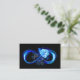Luminous infinity symbol with glowing, beautiful, lushly blooming rose made of blue flames on black background.