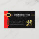 A red and black layered cover features a creative faux gold power plug electrical supply line design. This supply line has your business name "electrical service" which you can change alongside your prestigious name. Just below this are the contact details (or captions) allocated in their respective gold electricity icon buttons. At the lower right corner is a gold "home letter-e circuit" logo you can use.