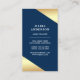 Cartão de visita de guitarrista profissional com belas estrelas douradas confete com sotaques falsos de folha de ouro num fundo azul marinho. Adicione seu nome e detalhes de contato para fazer uma primeira impressão duradoura.