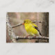 Este cartão de troca artístico tem um belo pequeno bugigangas de ouro encalhado num galho. Ele é um pássaro maravilhoso com bico de laranja, asas pretas e penas puras amarelas. A música dele parece o twitter original!