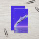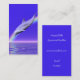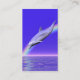 Um cartão de visita azul com um golfinho mergulhando no oceano, seguindo um arco-íris.