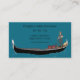 Crie um cartão de visita atraente para seu restaurante italiano ou outro negócio temático italiano. Esta cartão de visita apresenta uma ilustração de um gondolier e gondola colocados contra um fundo azul teal. Há espaço na frente para listar seu nome comercial, número de telefone, endereço e site. O verso tem espaço adicional para listar suas horas ou outras informações.