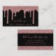 Rosa Dourado Sparkle Glitter Drips Cartões de visitas de luxo com falso brilho pingando cor-de-rosa pincelado, luxo de ouro rosa num fundo preto clássico. Somos tão elegantes na dentro como somos por fora. Nosso cartão de visita apresenta um efeito de gotejamento de brilho rosa dourado e brilho suave em rosa-pincelado, em um fundo preto clássico. Disponível impresso na sua escolha de estoque para acompanhar sua marca. Você está pingando no luxo, então seus cartões de visitas também deveriam estar! Fácil de personalizar! Entre em contato conosco em cedarandstring@gmail.com se precisar de assistência com o design ou produtos correspondentes.