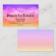 Um fundo gradiente que vai do roxo real no topo ao laranja ouro no fundo, bissecado por uma onda de fumaça branca, cria o cartão de visita perfeito e profissional para um compro de beleza. O verso é uma versão mais leve do gradiente, com espaço para mais informações, recompensas de fidelidade do cliente ou para compromissos.