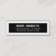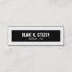 Costume, cartão de visita estreito corajoso. Design delgado, mínimo, alto contraste (e cinzas) do texto corajoso branco no fundo preto com grande beira branca. Mini cartão de visita simples, contudo corajoso, magro.