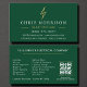 Promote your electrical services with this modern green and gold business card featuring a scannable QR code for instant contact access. Sleek metallic tones and a clean layout highlight your name, role, and company logo while maintaining professional clarity. Ideal for electricians, contractors, and service technicians.