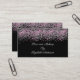 Cartão de visita preto feminino com cobertura de brilho rosa e prateado. ( a brilha está no design apenas ) Adicione texto personalizado tanto à frente quanto à parte traseira. Se você não precisar das linhas extras, simplesmente exclua-as.