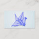 Uma grua de origami de papel azul. Um cartão de visita inteligente para artesanato ou pessoa segura.