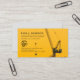 Um cartão de visita mínimo com um tema do estilo amarelo-alaranjado com uma grua no pano de fundo. As cores trazem ideias de um pôr do sol ou nascer do sol enquanto as mesmas cores imitam o esquema de codificação de cores de uma zona de construção.