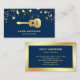 Cartão De Visita Guitarrista de Violão Azul Folha de Ouro