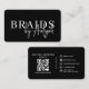 Promote your braiding and hair styling business with this modern typography business card, designed for professional braiders and hair stylists. Featuring a built-in QR code, this card lets clients instantly book appointments, view your braid portfolio, or follow your social media. Clean, bold typography creates a sleek, modern look while keeping your contact details clear and professional. Fully editable and print-ready for salon use, pop-ups, and personal branding.