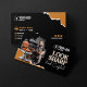 Aumente a visibilidade de sua barbearia com este Modelo de cartão de negócios impressionante e moderno! Este modelo profissional é perfeito para atrair novos clientes e promover seus serviços. O design apresenta uma estética ousada e masculina com uma imagem de alta qualidade. Edite facilmente a modelo para incluir seu logotipo, informações de contato e serviços oferecidos.