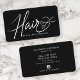 Cartão De Visita Hairstylist de Script Branco e Preto Clássico