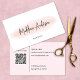 Faça uma impressão duradoura com esse cartão de visita chic e sofisticado, projetado para penteados. Apresentando um fundo de aquarela cor-de-rosa macia com golpes elegantes de pincel de ouro, esta carta exumenta profissionalismo e estilo. Totalmente personalizável com seus detalhes.