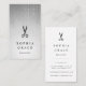O Elegante cartão de visita vertical para cabeleireiros apresenta a inscrição negra clássica em uma cinza pálida de fundo ombre adornada com fios de falsos fios de folhas prateadas. Personalize com duas linhas de texto personalizado na frente sob um par de tesouras de cabeleireiro e adicione as informações de contato do cheio ao lado inverso.