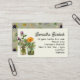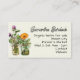 Cartão de visita com ervas design. Os potes cheios de verde e ervas decoram a borda esquerda dos cartões esbranquiçados. Personalize o texto preto em script manuscrito ao longo do topo e do texto impresso abaixo. O reverso é marrom-cinza escuro com padrão de erva. Utilização para anunciar itens botânicos para venda, uma posição de mercado do agricultor ou outros produtos de saúde relacionados com a natureza e bens de comida natural.