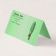 Esta dobra sobre cartão de visita de pé tem um homem com um grande picles verde com rosto para uma cabeça vestindo um terno marrom sobre um fundo verde. Personalize todas as suas informações na frente, na parte traseira e na dentro com os modelos.