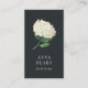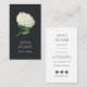Cartões de visitas verticais elegantes para floristas, designers florais, planejadores de casamento ou outros profissionais de casamento apresentam uma ilustração de cor d'água hydrangea floressom em verde e branco, com seu nome ou nome comercial embaixo, em um fundo preto suave e marcante. Adicione os detalhes de contato do cheio ao reverso em contraste com preto suave em branco. Inclui três ícones de mídia social e um campo de modelo para o seu identificador de mídia social.