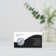 Esse cartão de visita mecânico automotivo e de transporte apresenta segmentos pretos e brancos separados por uma fita cromática ondulada. Um elegante ícone bordado em ouro de um pântano e chave de fenda está no lado inferior esquerdo do design, que é geralmente adequado para automotivo, transporte, transporte, carro, serviço de carro, reparo de carro, garagem automática, mecânica, temas elegantes. Você pode personalizar este cartão imediatamente com seu nome e detalhes.
