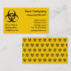 Ícone de aviso de perigo biológico preto em fundo amarelo. Texto personalizado. Um padrão perfeito no lado de trás.