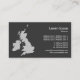 Um cartão de visita com um mapa das Ilhas Britânicas. Detalhes da empresa na frente com nome e detalhes de contato no verso em um estilo tom em contraste com a frente.
