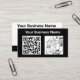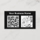 Cartão de visita da empresa de serviços de impressão e impressora que apresenta uma ilustração de desenho animado na frente. Ilustração e Código QR.