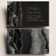 Esta cartão de visita de imobiliária apresenta uma borda de agata preta, aparada com cintilação falsa dourada à esquerda e texto dourado à direita sobre fundo não preto. Um design de agate preto e dourado correspondente aparece no verso.