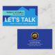 O cobrir apresenta uma silhueta azul criativa de construção em vários tons de azul com uma aba ciano perto do topo. A conta contém seu nome prestigiado e o título do trabalho. Logo abaixo da guia está uma legenda de slogan "TALK de VAMOS" que você pode mudar para atender às suas próprias necessidades de serviço. Os detalhes de contato seguem o mesmo procedimento na base do cartão.