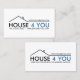 Um cartão de visita de dois imóveis. A cartão de visita de imóveis está mostrando uma linha preta que está formando um logotipo da casa junto com o nome da empresa imobiliária e os contatos. As cores principais para o cartão de visita de imobiliário são branco, preto e azul. Esta design funcionará perfeitamente para um construtor, bem como para agentes imobiliários e agências.