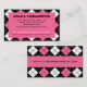 Cartão De Visita Impressão de Argyle Preto e Branco Rosa
