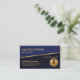 No verso, um tema design semelhante é usado com seu nome prestigiado no topo, seguido dos detalhes do contato e da opção de slogan. O logotipo dourado fica perto da parede esquerda.