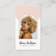 Simples e elegante, este cartão de visita maravilhosamente feminino com um modelo fotográfico moderno em forma de arco que funciona bem para a indústria da beleza ou outras profissões que servem as mulheres, ou seja, cabelos e maquiagem, boutique de moda, spa, salão e muito mais. Sua foto está bordada no topo com uma forma macia arredondada em cor-de-rosa pincelado. Todo o texto pode ser personalizado com as informações de negócios que você deseja incluir. Uma seção está incluída na parte traseira da placa para incluir suas informações de mídia social. Se precisar mover as coisas, você pode selecionar o bar azul na parte inferior do modelo design indicando "Editar usando a Ferramenta Design". Isso abrirá a Ferramenta Design Zazzle e permitirá que você veja todas as camadas de texto e elementos gráficos na placa e faça edições adicionais.