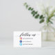 Espalhe a palavra e promova sua presença no Instagram, no Facebook, no Twitter e nas mídias sociais com nosso cartão de visita de acompanhamento nas redes sociais. Design apresenta 3 ícones, siga-me o script de caligrafia na frente e o Código QR para redes sociais e mais detalhes na parte traseira. cartão de visita único e elegante nas redes sociais.