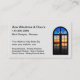 Cartões de visitas de substituição de janelas e portas concebidos para empresas que vendem, instalam e substituem janelas e portas residenciais ou comerciais concebidas com uma vista cênica agradável através de uma porta de vidros no fundo.