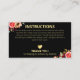 Essas etiquetas florais e luxuosas em fundo preto são para clientes que compram seus produtos de banho, corpo e spa caseiros. Nesse cartão, você encontrará uma seção de lista de ingredientes, um local para adicionar sua hashtag de mídia social, instruções sobre como usar seu produto e um bônus Obrigado ao cliente por escolher sua marca.