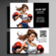 Arte original de ©Gifts_AtTheCorner2024 ©mjm2024 Esta cartão de visita única e atraente apresenta uma boxeadora feminina em ação, representando perfeitamente a profissão de instrutora de kickboxing. A imagem dinâmica captura a essência da força, do poder e da determinação, fazer-a uma escolha perfeita para qualquer pessoa na indústria das artes malhações ou marciais. A inclusão de um código QR no cartão de visita adiciona um toque moderno e de tecnologia, permitindo que os clientes potenciais acessem facilmente mais informações sobre os serviços do instrutor de kickboxing, programações de classe ou detalhes de contato com uma simples varredura usando seu smartphone.