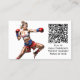 Arte original de ©Gifts_AtTheCorner2024 ©mjm2024 Esta cartão de visita única e atraente apresenta uma boxeadora feminina em ação, representando perfeitamente a profissão de instrutora de kickboxing. A imagem dinâmica captura a essência da força, do poder e da determinação, fazer-a uma escolha perfeita para qualquer pessoa na indústria das artes malhações ou marciais. A inclusão de um código QR no cartão de visita adiciona um toque moderno e de tecnologia, permitindo que os clientes potenciais acessem facilmente mais informações sobre os serviços do instrutor de kickboxing, programações de classe ou detalhes de contato com uma simples varredura usando seu smartphone.